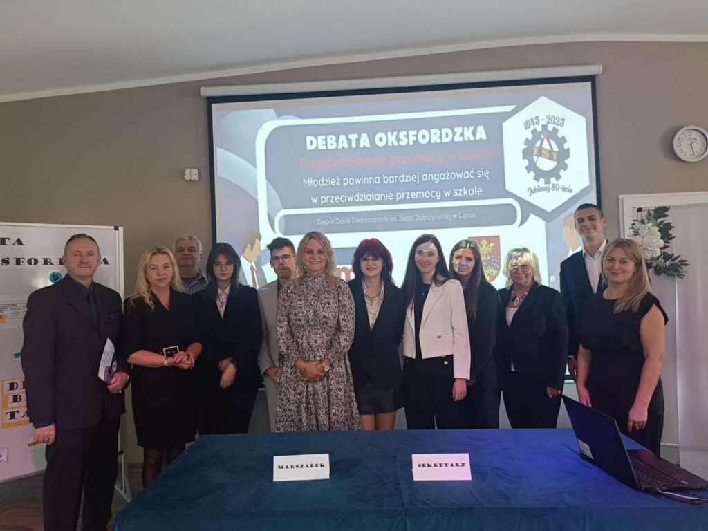 W dniu 2 października br. w Zespole Szkół Technicznych im. Ziemi Dobrzyńskiej w Lipnie odbyła się debata oksfordzka pod hasłem: „Młodzież powinna znacznie bardziej angażować się w przeciwdziałanie przemocy w szkole”. Wydarzenie zgromadziło uczniów Zespołu Szkół Technicznych im. Ziemi Dobrzyńskiej w Lipnie oraz Liceum Ogólnokształcącego im. Romualda Traugutta w Lipnie, którzy w czteroosobowych drużynach zmierzyli się w intelektualnej dyskusji, prezentując argumenty za i przeciw postawionej tezie.