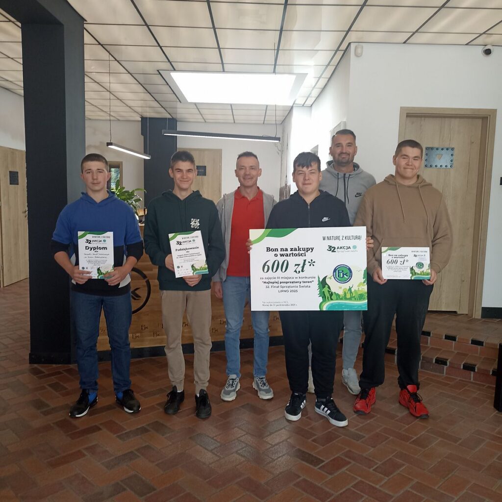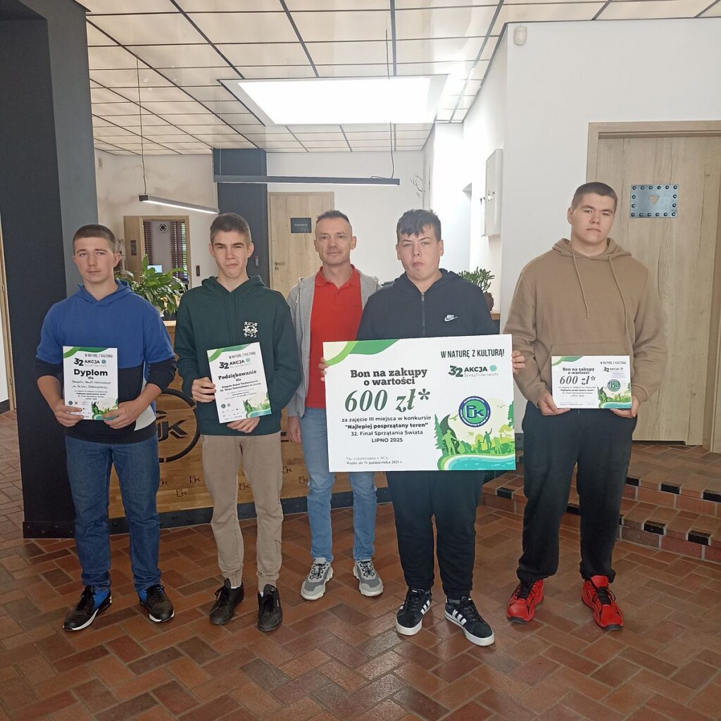 Uczniowie ZST w Lipnie po raz kolejny włączyli się do akcji Sprzątanie Świata, zorganizowanej przez Przedsiębiorstwo Usług Komunalnych w Lipnie Sp. z o.o. oraz Urząd Miejski w Lipnie. Podczas finału rozstrzygnięto konkurs na „Najlepiej posprzątany teren”. Zwycięzcy otrzymali nagrody finansowe, podziękowania oraz dyplomy. ZST w Lipnie zdobył w tym roku III miejsce, które zostało uhonorowane bonem na zakupy o wartości 600 zł. Na ręce Małgorzaty Spisz Dyrektor Szkoły wypłynęły także podziękowania dla Szkoły za włączenie się do akcji.